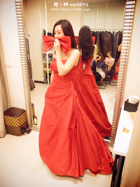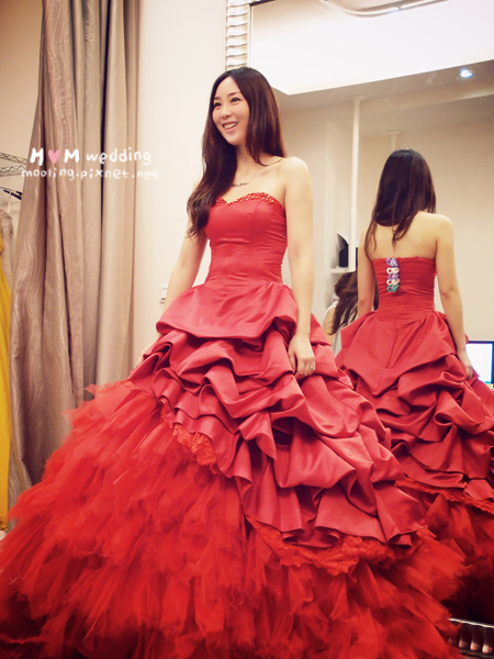我很愛大紅色,或是一些顏色很飽和的禮服,例如鮮黃、寶藍(我都有選XD)