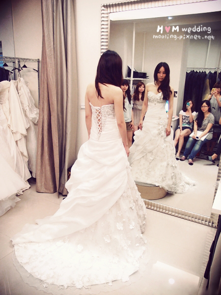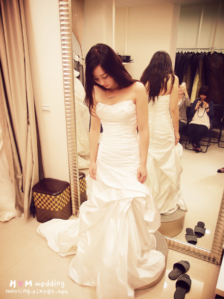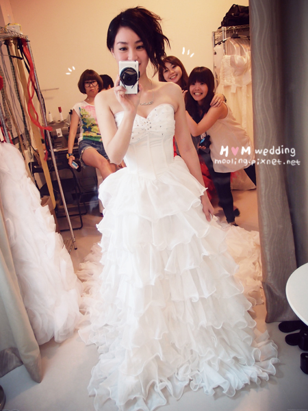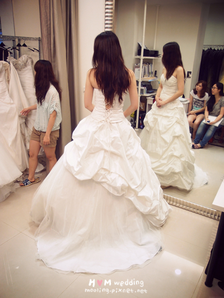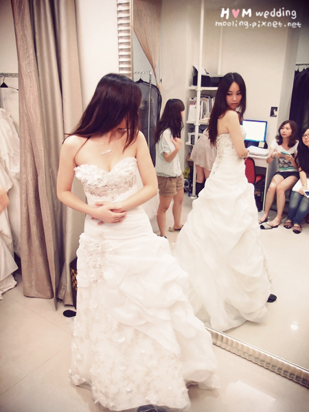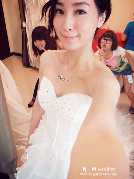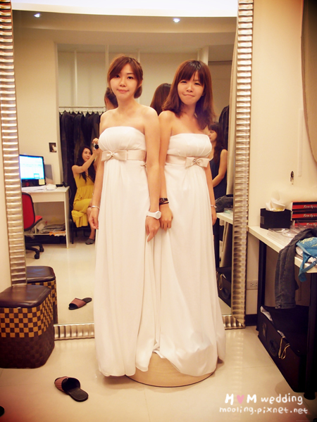 最後是兩位伴娘的試穿時間,我那時是希望能有一樣的款式,結果剛好真的有