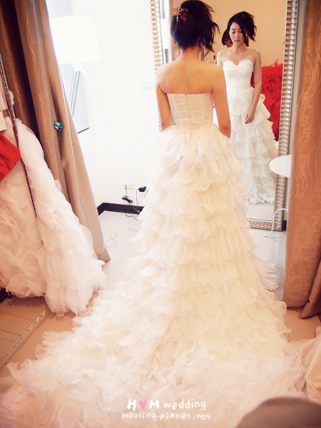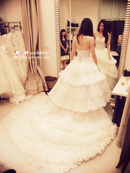但很可惜試穿了很多套,因為我們距離婚期剩沒有很長