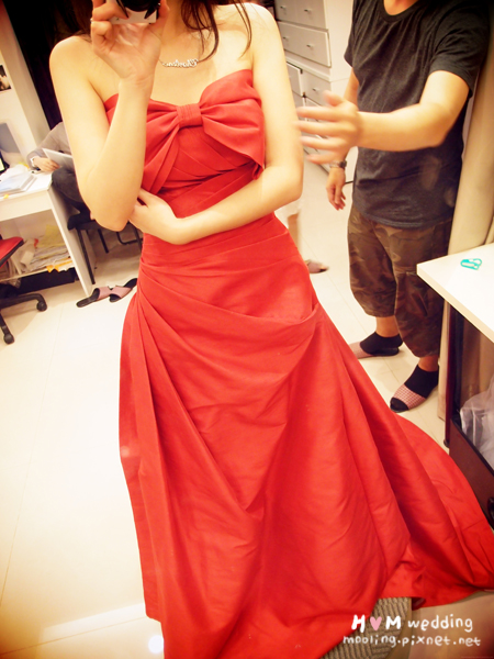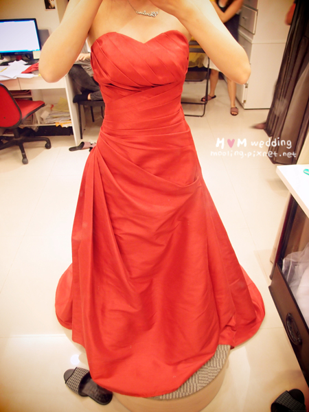 這是第二套敬酒時的禮服,紅色但是A-Line的(是有多愛紅色)