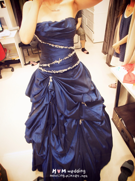 最後一套是送客時的禮服,寶藍色的小蓬裙