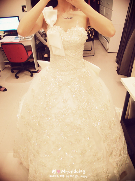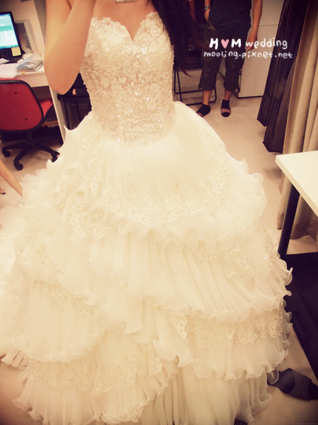 這是設定進場時穿的第一套蓬裙,但照片也還沒有加內蓬