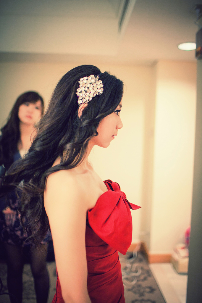 造型部份除了早上迎娶要戴的金飾外,婚禮全程我的飾品都很少,我還是不喜歡有太多東西在身上