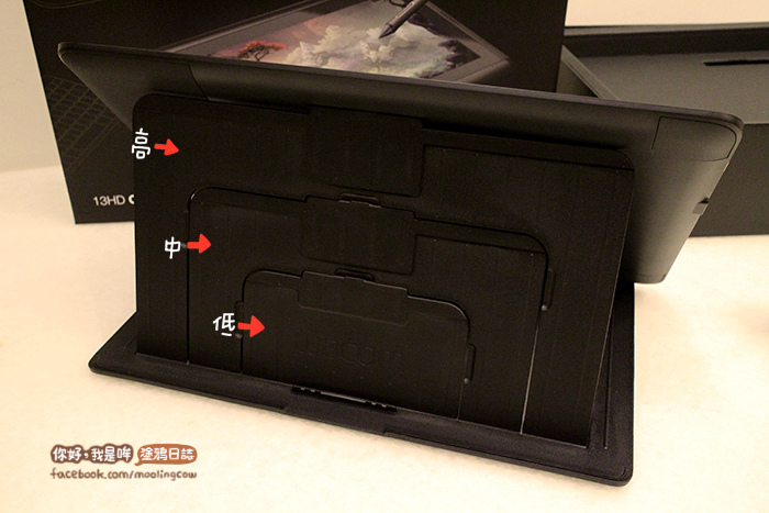 背面是有分低、中、高 (22°、35° 和 50°) 三種角度的塑膠板,可依自己喜歡的高度調整