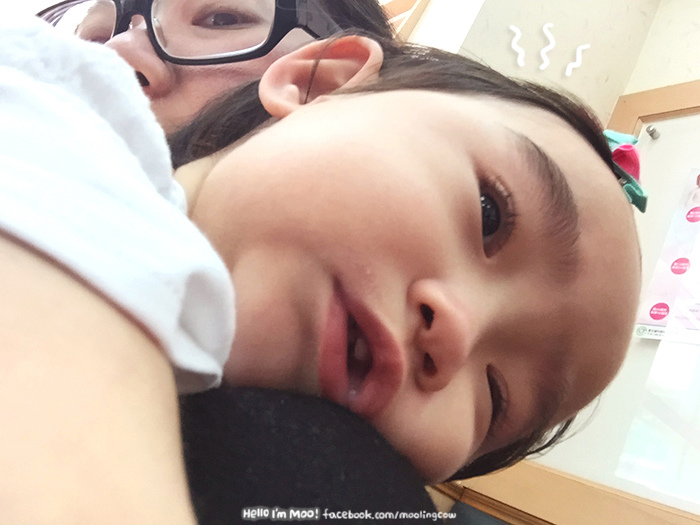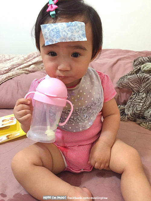 因為退燒藥水要燒到38.5以上才可以喝,所以在這之前她一直很沒精神