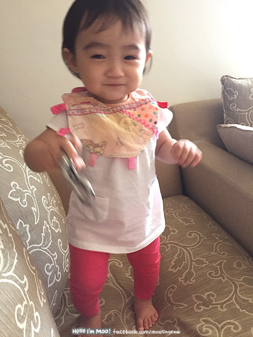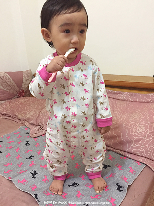 去年買的Uniqlo薄睡衣(70cm)已經穿不下了,買了80的結果好長XD