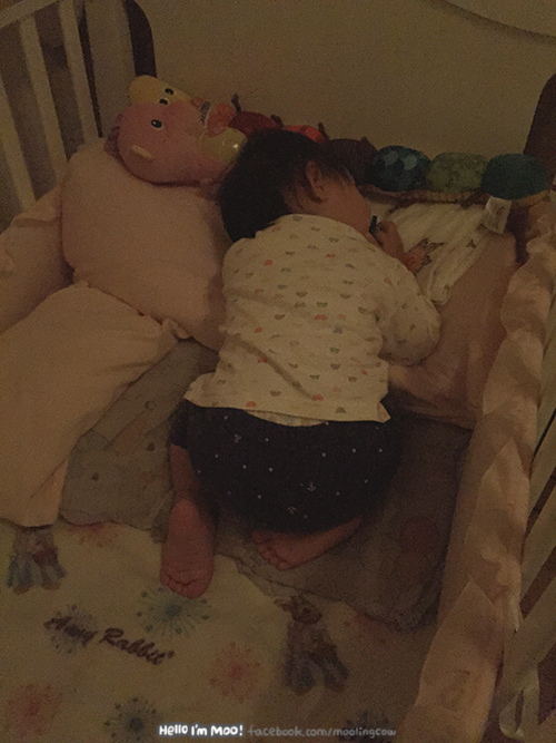 (這才讓我想到前一晚小哞剛入睡時整個人抖了好大一下,很像新生兒時期被嚇到的那樣抖)