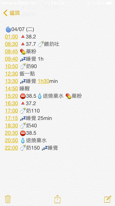 而且也有兩次燒到38.5,給了藥水退燒後卻又很快再燒起來
