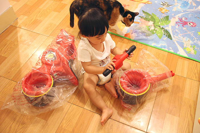 她現在也還不太會轉彎只會直行,所以騎一騎就會一直去撞牆,然後還自己說砰這樣