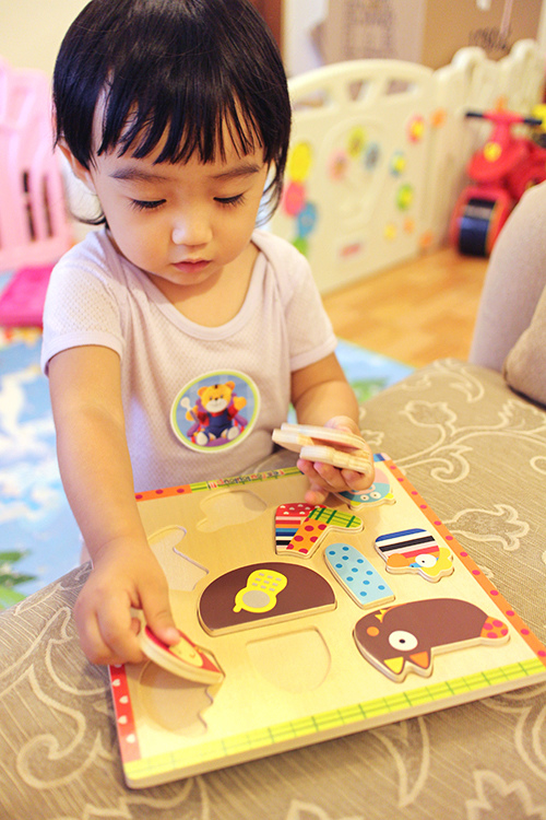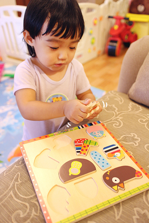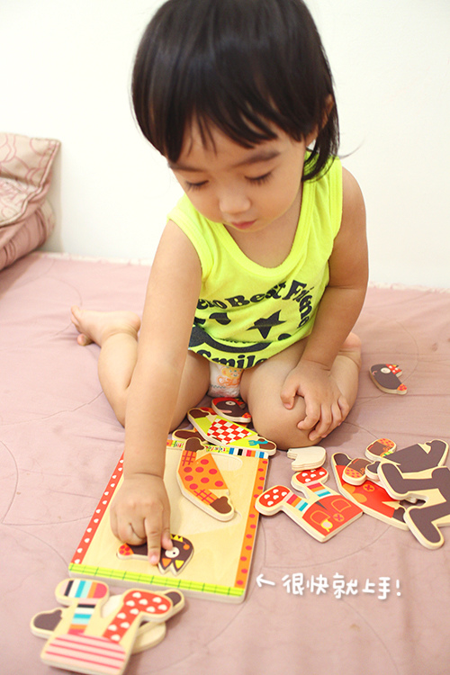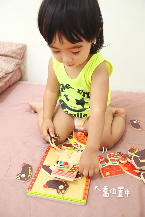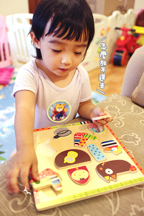 而且方向的概念還不懂,只能跟她說放在哪一格,要她自己慢慢去摸索正確的位置