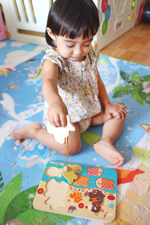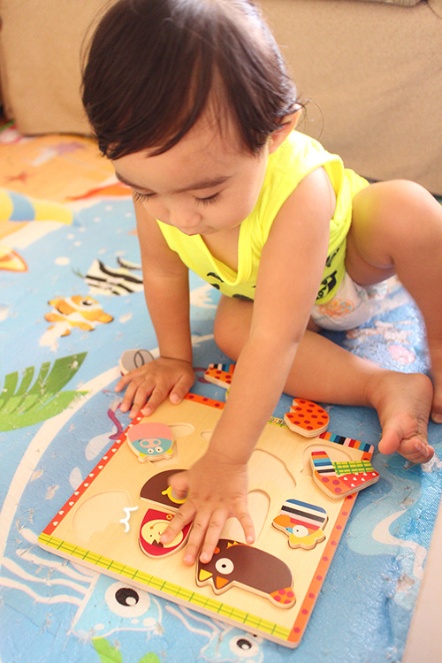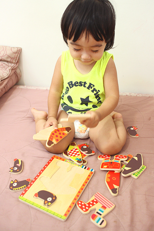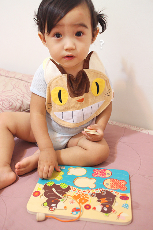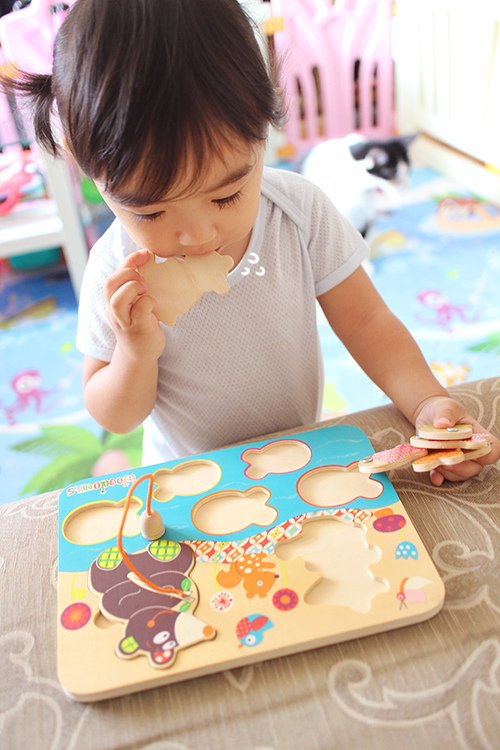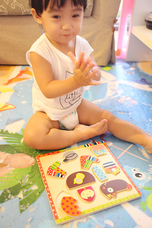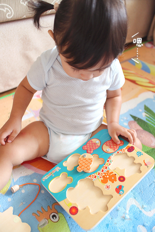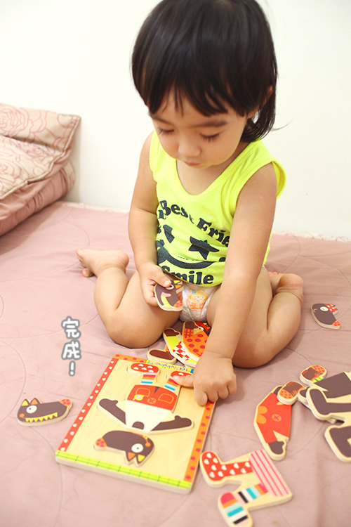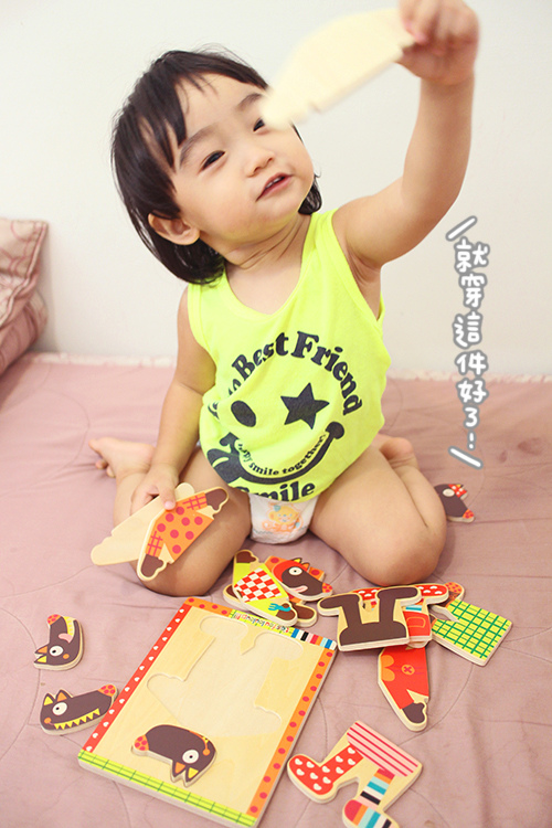 有時玩一玩她還是會突然一個迅速把拼圖塞嘴巴