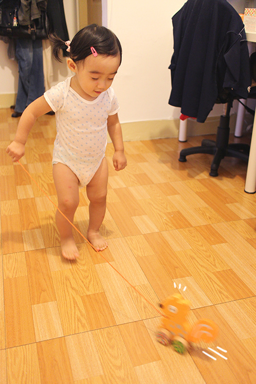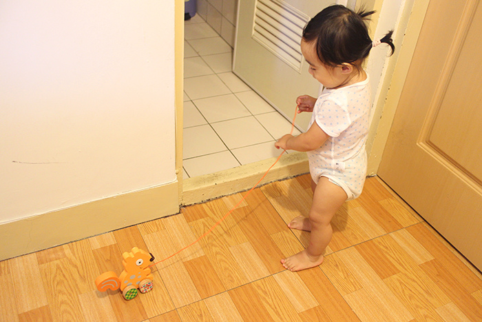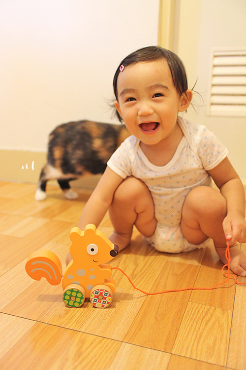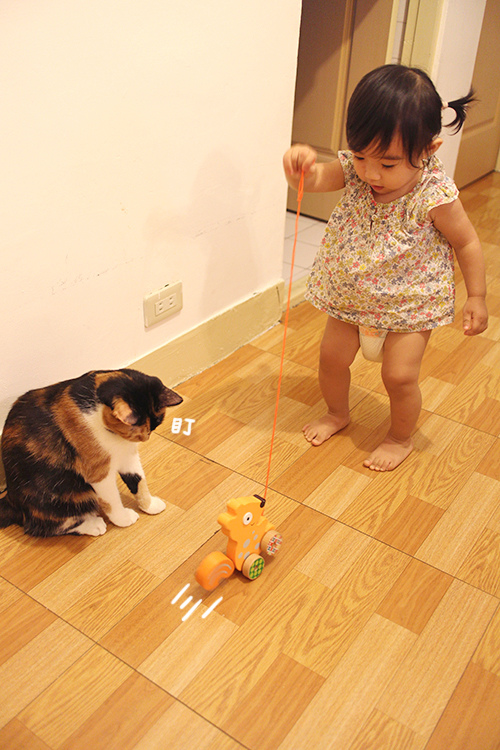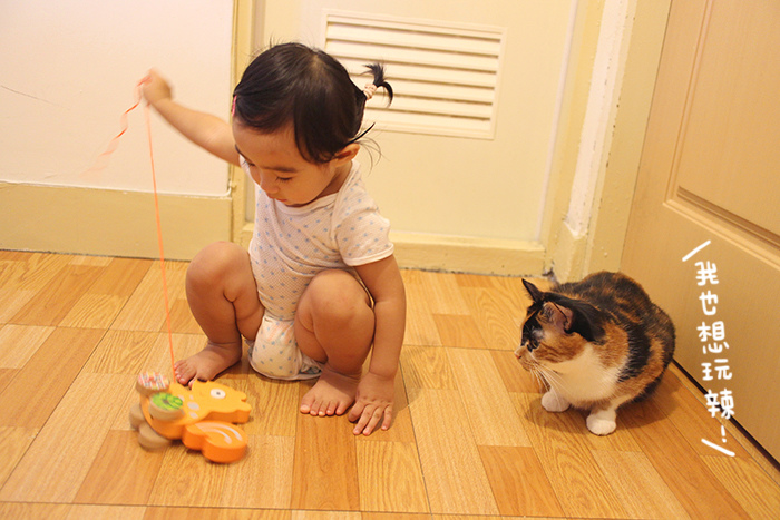 先拉一遍給小人看後馬上就興奮地衝過來想玩