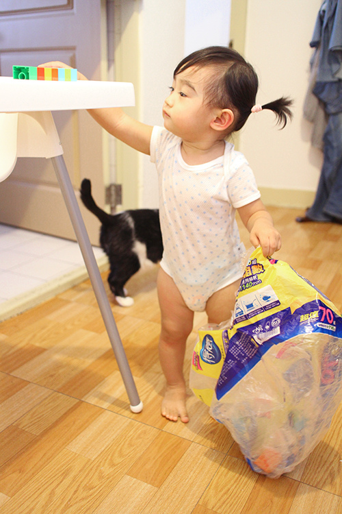 後來我把它們都塞進去後她又抱著衝過來要我把它們拿出來