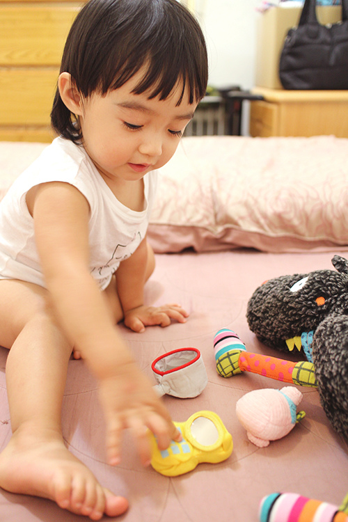 幫她拿出來後突然變成一個抓周的概念,第一個伸手拿的是手機!