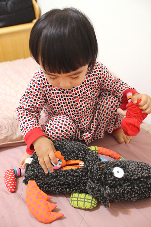 都研究完每個小東西後,再來就教她可以把它們塞進去跟拿出來