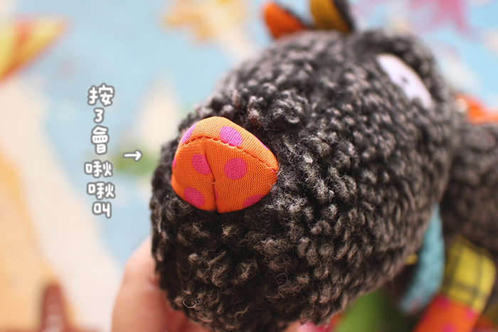 它的鼻子也是有功能的~捏了會啾啾叫,尾巴裡面是沙沙紙材質