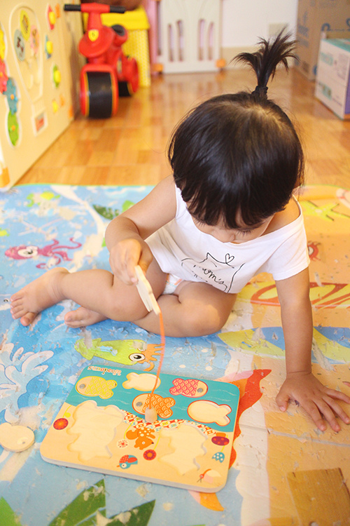 邊玩我有邊教她說這是魚,她現在也會說魚了