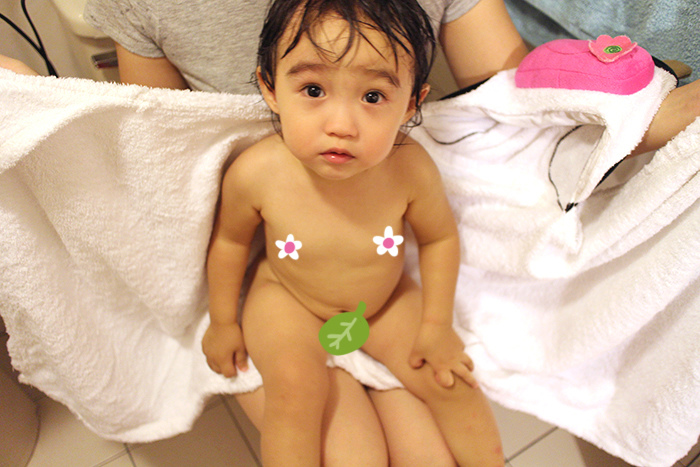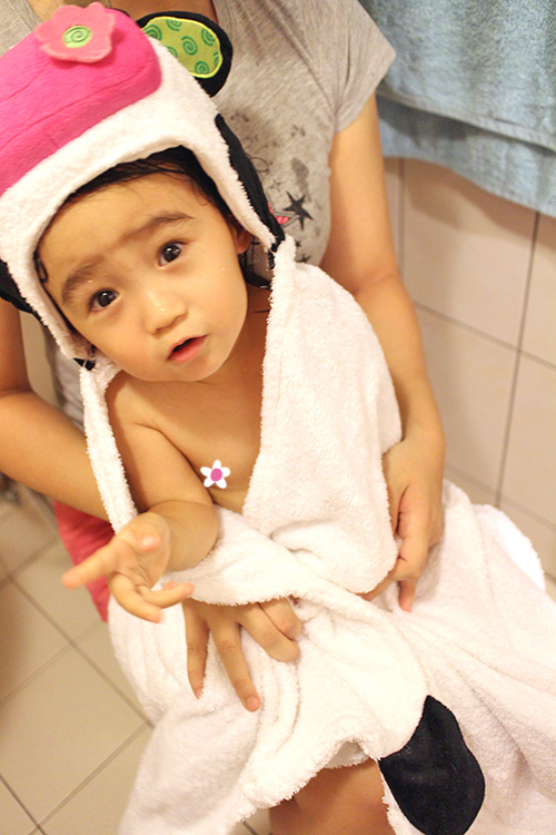 浴巾的左右兩邊都有做包手設計,讓小人方便抓著把自己包起來