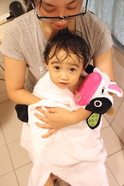 是說小哞剛好也沒有專屬自己的浴巾,都是跟老母共用