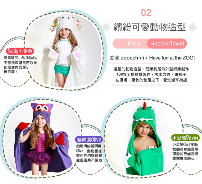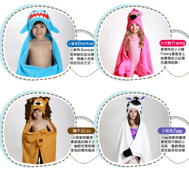 【ZOOCCHiNi 動物連帽浴巾/保暖毯】