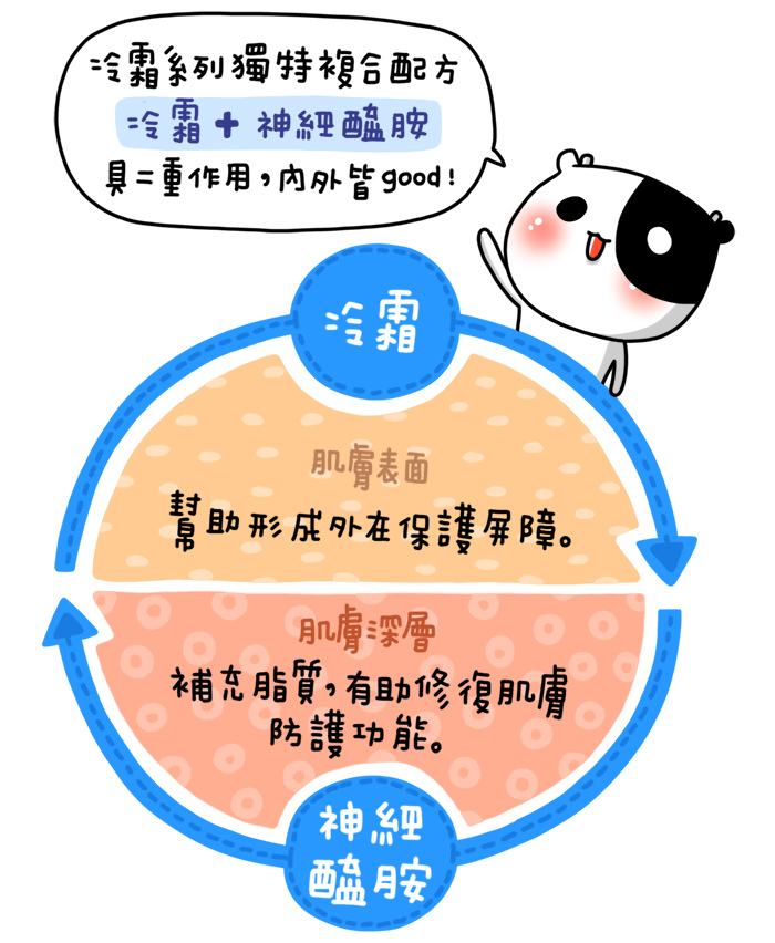 主打冷霜+神經醯胺兩種成分帶來的防護、舒緩、滋養三重功效