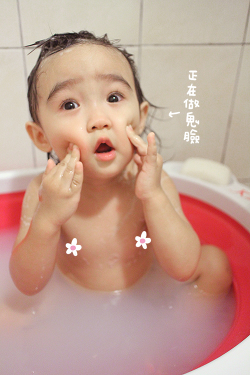 正在自己乖乖洗手手~接著被老母cue做鬼臉