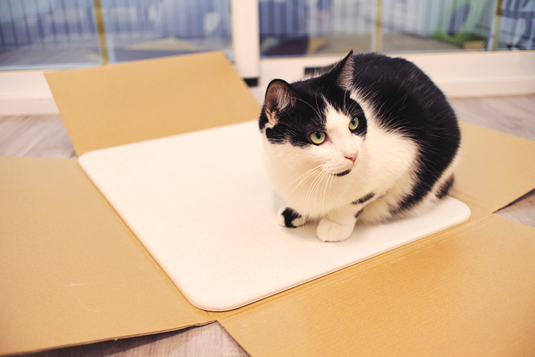 小哞對這塊新浴墊也覺得很好奇,一出來就瘋狂踩踩踩