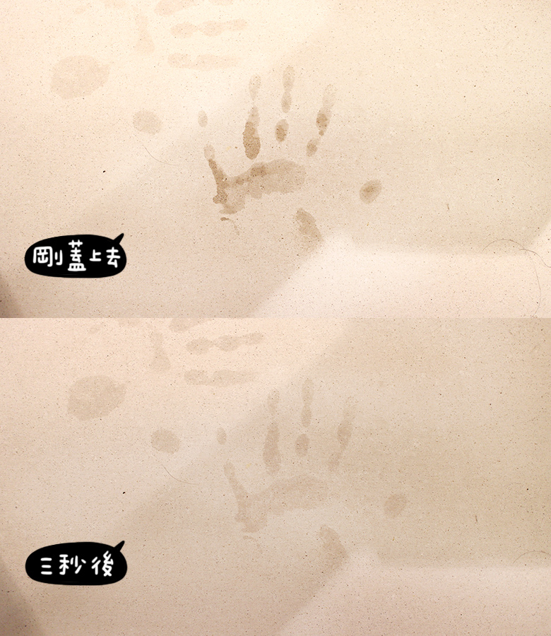 其實剛蓋上去它就已經在吸水了,三秒後完全吸光光