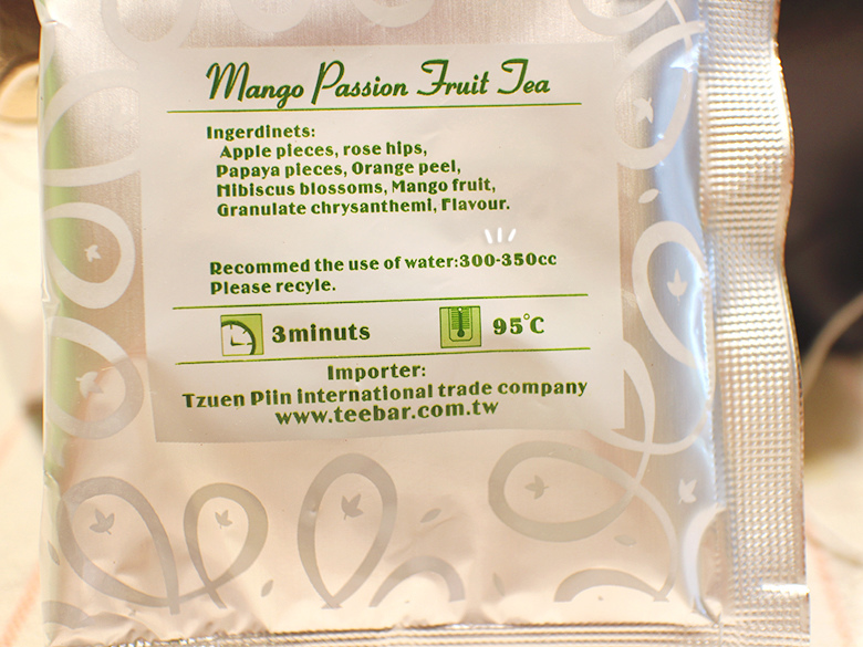成份:綠瑪黛,芒果片,鳳梨片,苦橙皮,山竹果,向日葵。