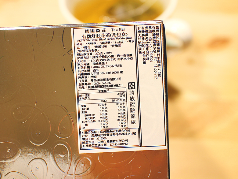 有些有機的茶包是在台灣做加工分裝的,也很清楚說明該有的資訊