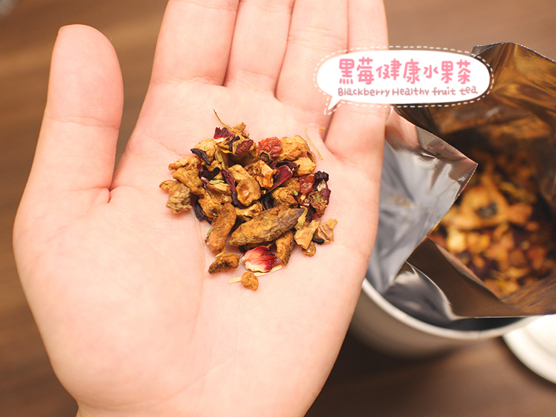 成份:蘋果塊、蘋果片、洛神花、玫瑰果、黑莓、草莓片、毛蕊草。