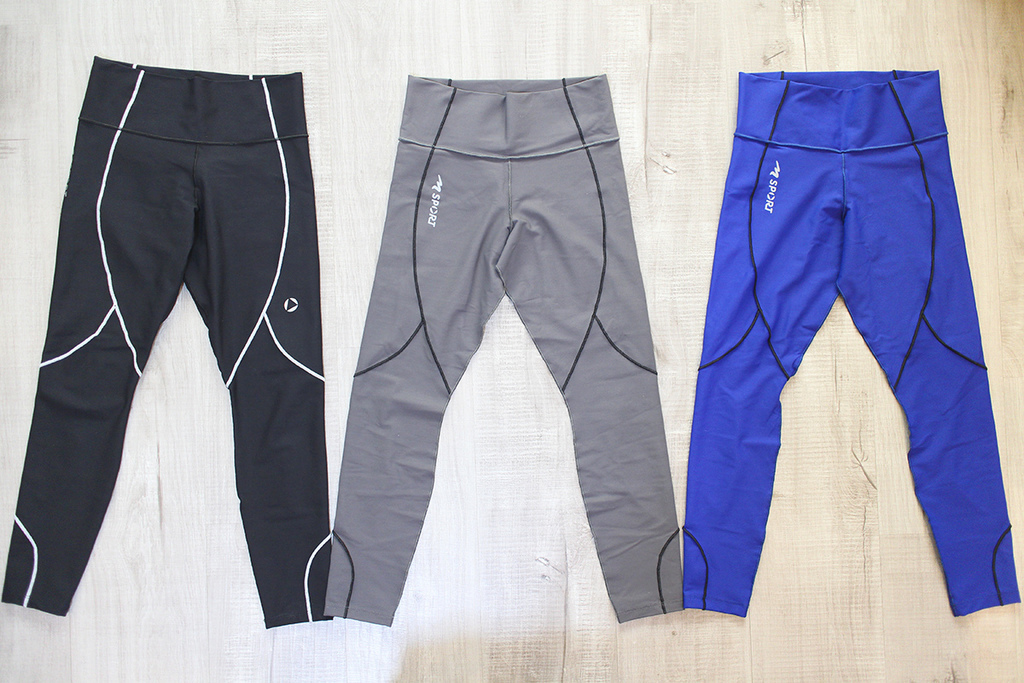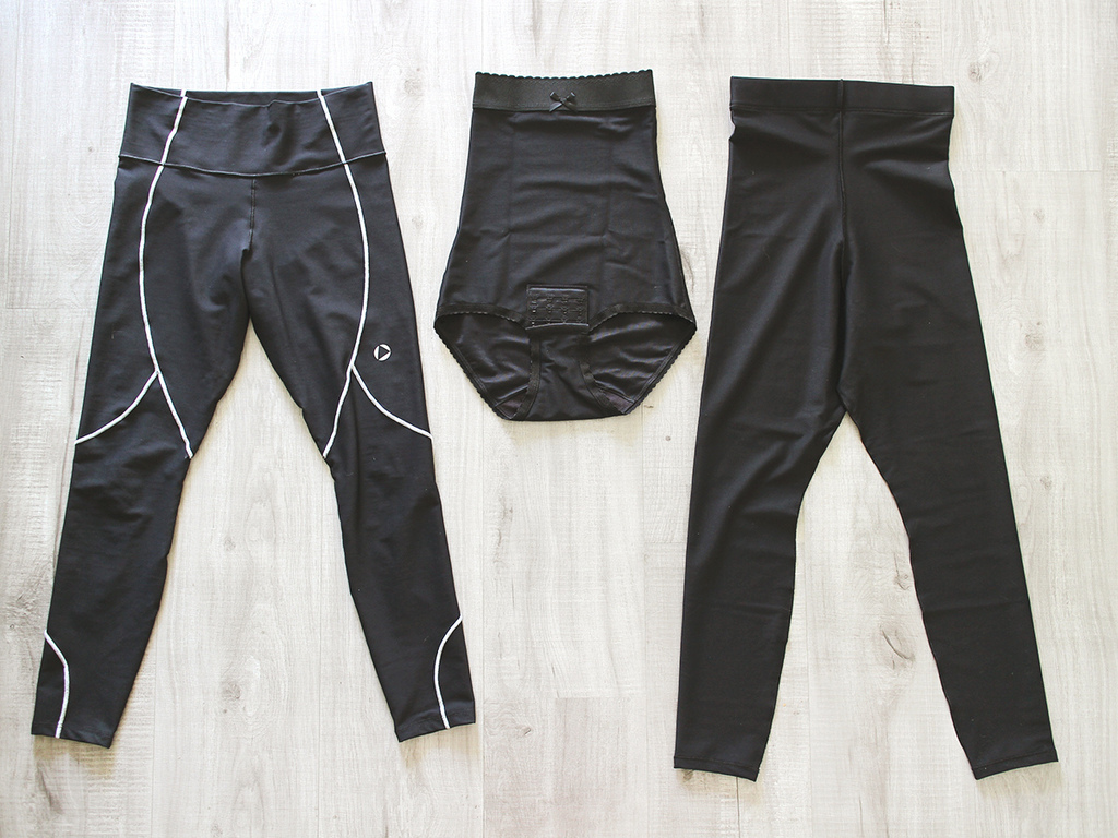由左到右分別是九分運動褲、高腰美體褲、九分高腰提臀塑身褲(內搭褲)