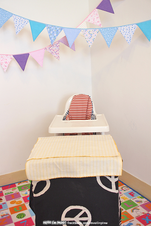 桌子是用兩個紙箱疊起來再鋪塊布跟餐墊,整個超簡單XD