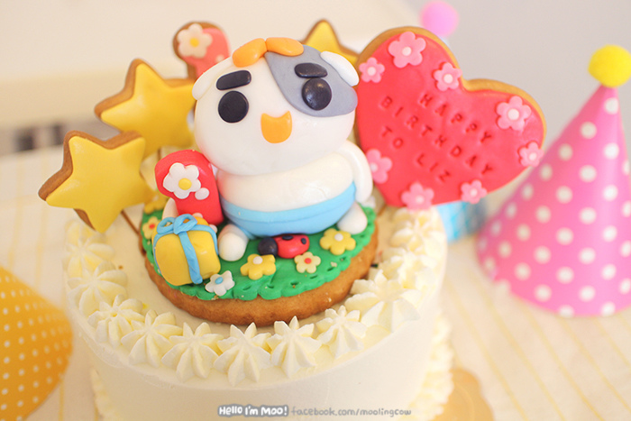 因為上面那隻小哞的翻糖人偶,寄來時已經解體、底座餅乾也裂開
