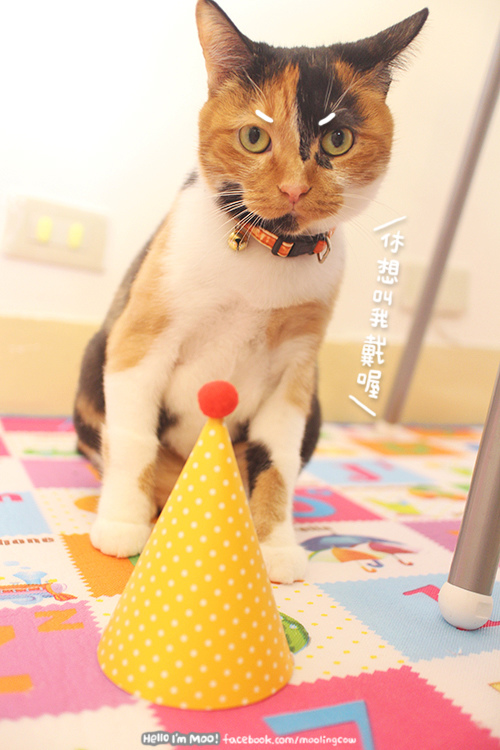 帽子組好後要先試戴看看,原本以為她不會乖乖就範結果竟然也很順利!!