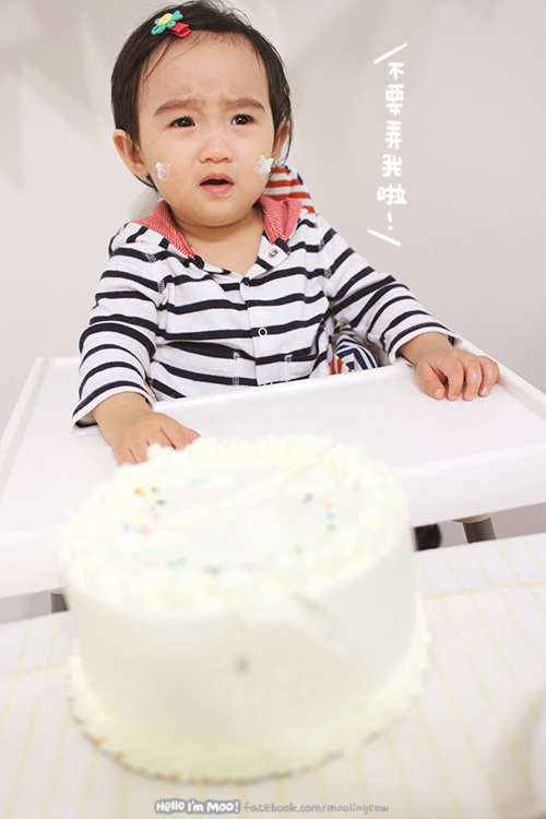 一開始還探頭探腦的看我到底在幹嘛,後來就一直想要伸手去抓蛋糕