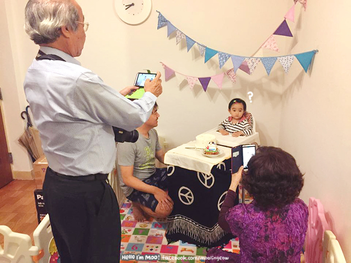 直到晚上跟阿公阿嬤吃完飯後回家才真正開始慶生,這時就換阿公阿嬤瘋狂拍照了