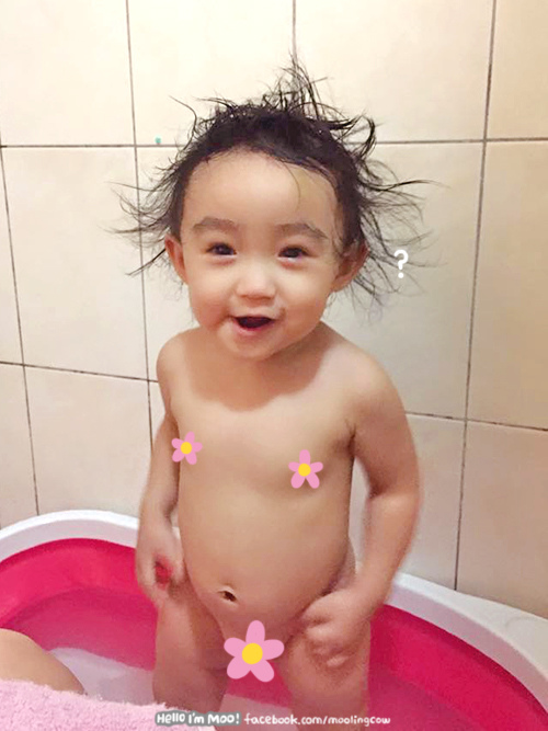 因為這天很熱所以換衣服前乾脆就先讓她裸體跑來跑去
