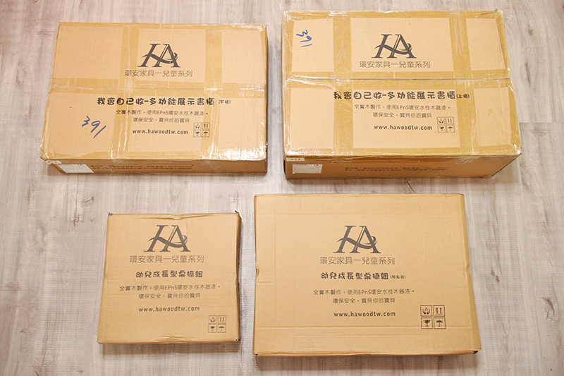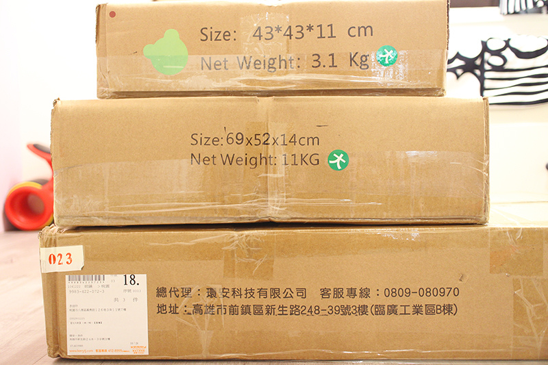 送來時總共有四箱,每箱上都有寫重量和尺寸