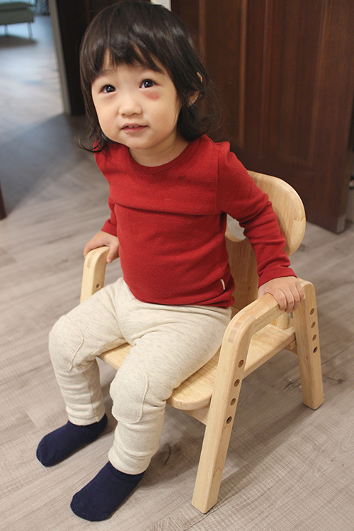 桌子比椅子多一段高度可以調整,我們一樣是用最低的,高度也是剛剛好