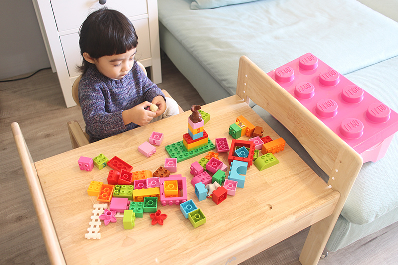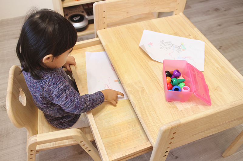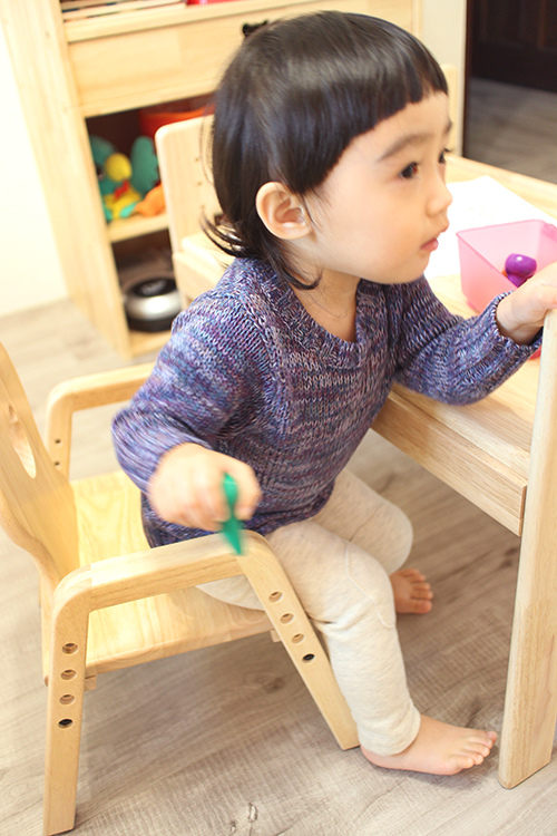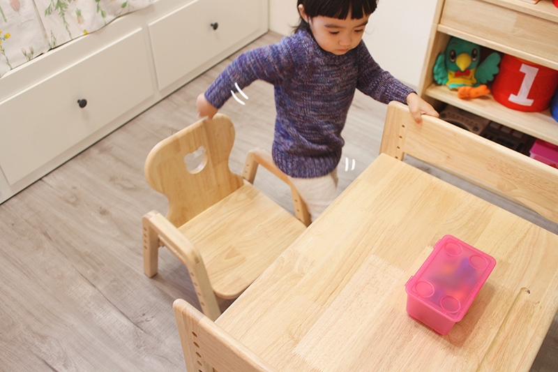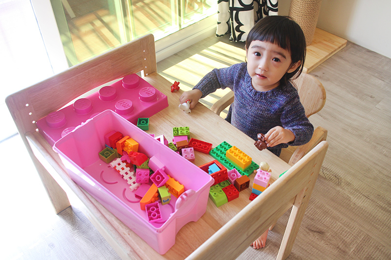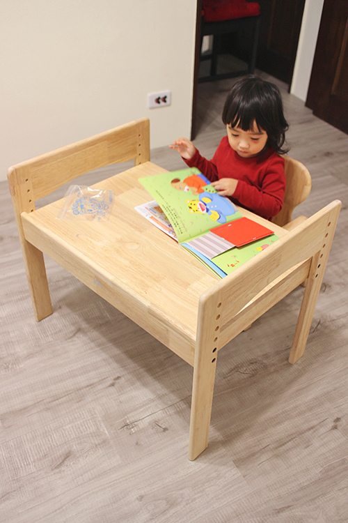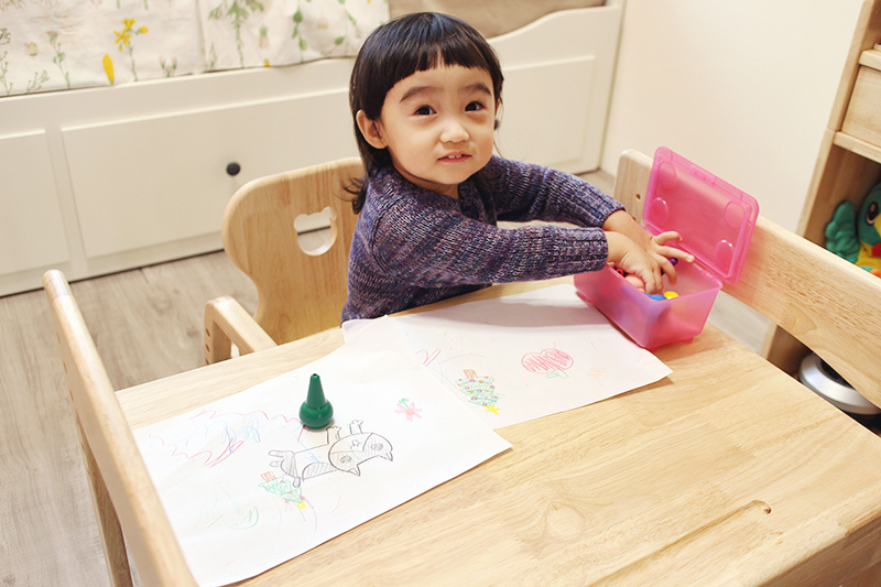 這組桌椅到現在姿姿還是用得很好,玩玩具、畫畫、吃點心都在上面