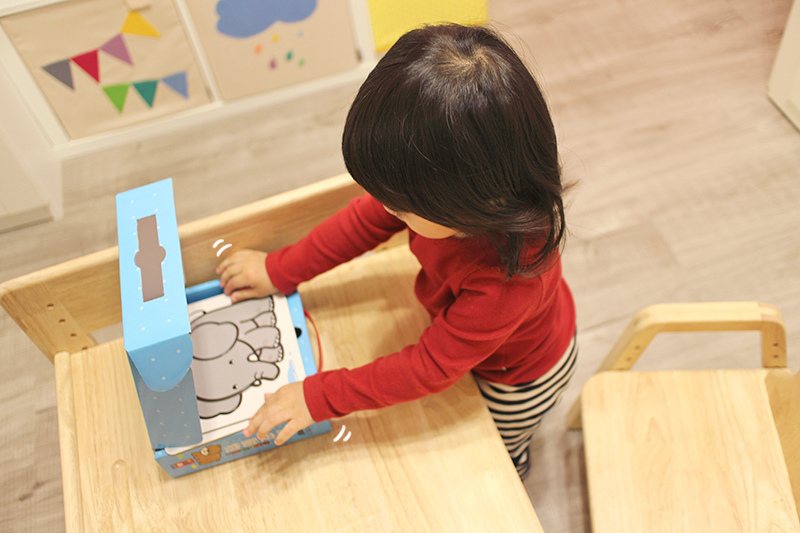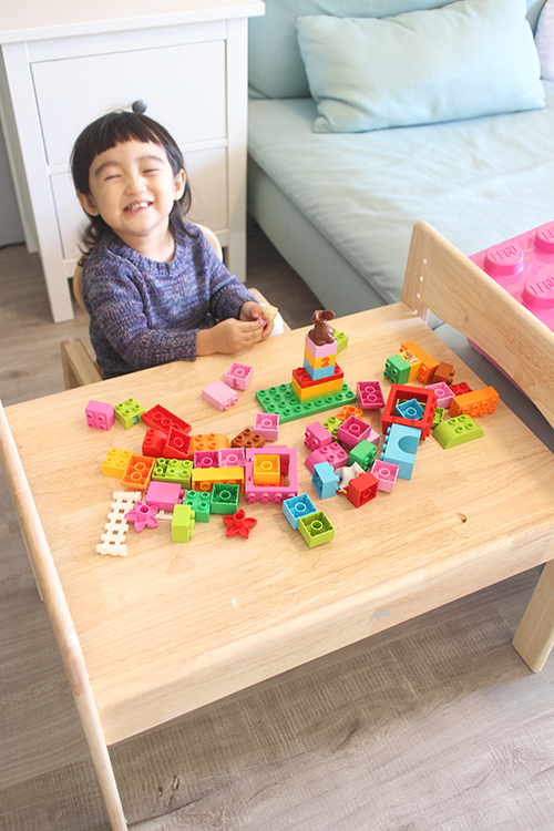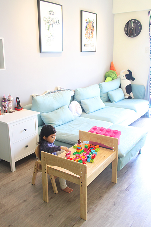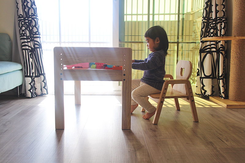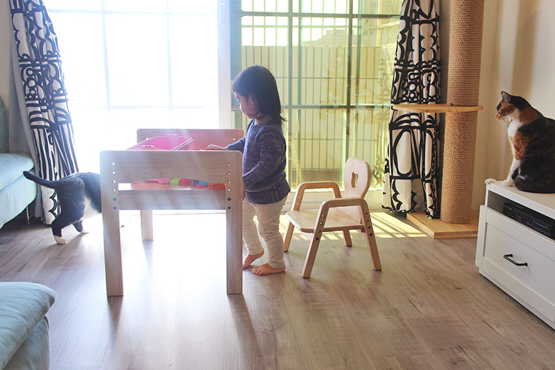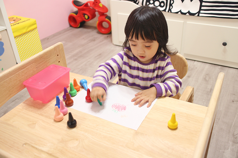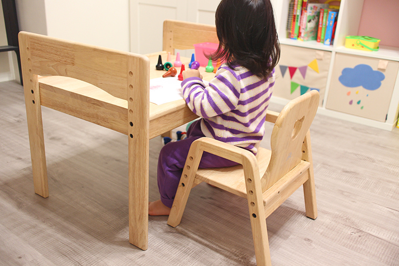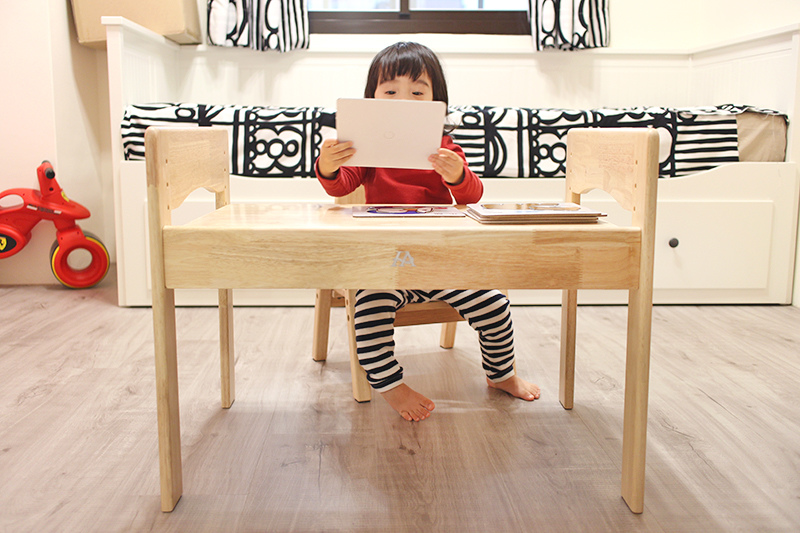 這組桌椅到現在姿姿還是用得很好,玩玩具、畫畫、吃點心都在上面