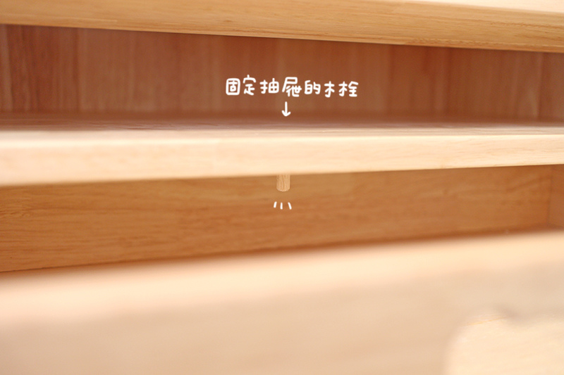 抽屜則是靠中間一根小木栓固定,不用擔心小人會拉太用力整個掉出來