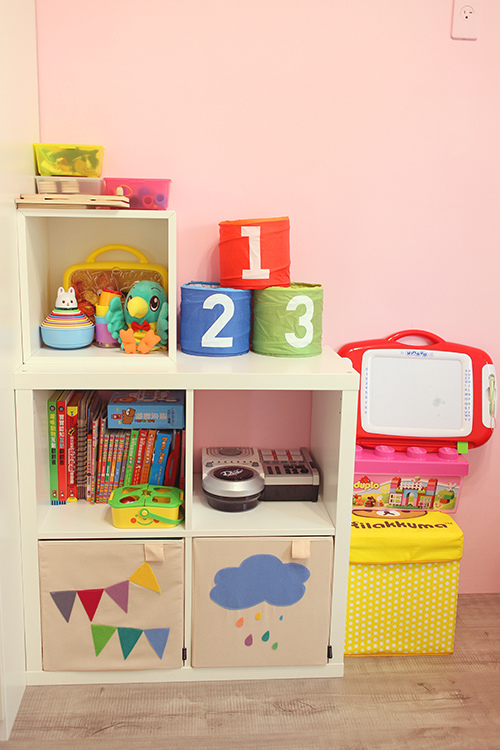 而且剛剛好可以放兩個玩具收納箱喔尺寸跟IKEA的收納箱是一樣的整個好貼心