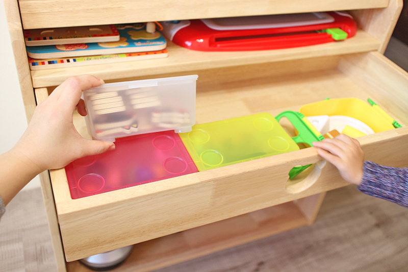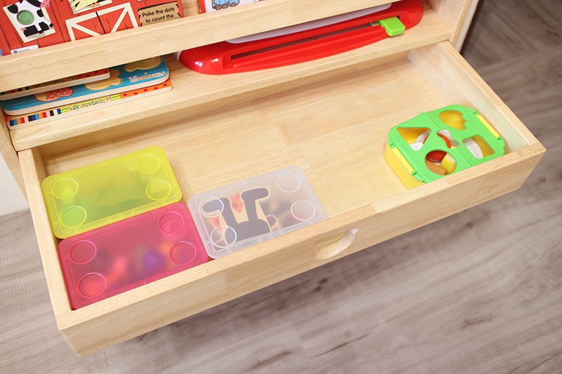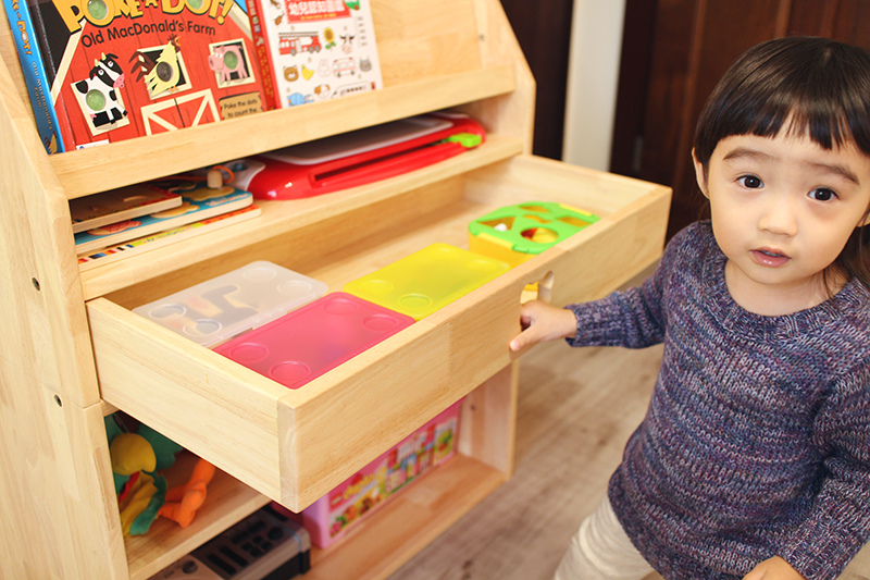 抽屜很好拉出來,姿姿現在要畫畫都會自己打開拿蠟筆出來,畫完也會自己收回去