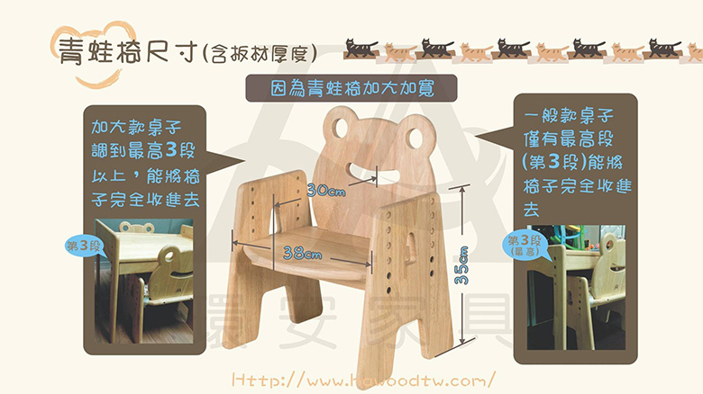 比較要注意的是青蛙椅如果搭配一般款桌子,桌子的高度要調到最高才能擺進去唷!