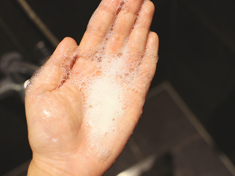 第二次洗很明顯就有很多泡泡了,我會先讓泡泡停留一下先洗身體再一起沖掉