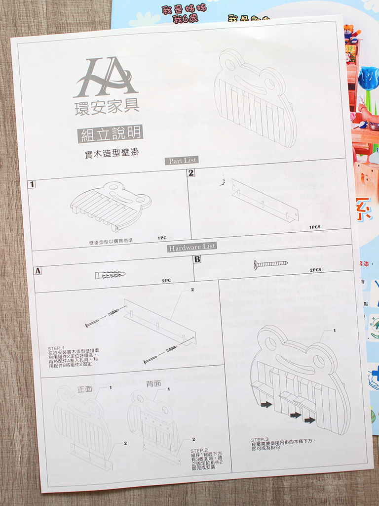這個組裝比青蛙壁掛更簡單,媽媽自己兩分鐘就可以完成唷!(需要螺絲起子)