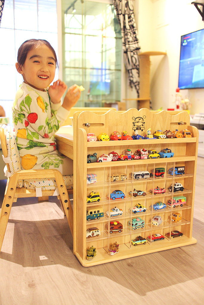 因為姿姿其實對小車子沒有太大的興趣,但我本身有在收TOMICA小車,剛好櫃子又爆炸了可以拿來放XD