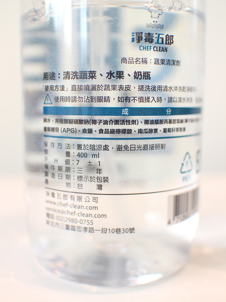 主要的效果是可以把農藥洗乾淨,但成分卻是用小麥、玉米、馬鈴薯等天然來源製作(感覺很神奇)